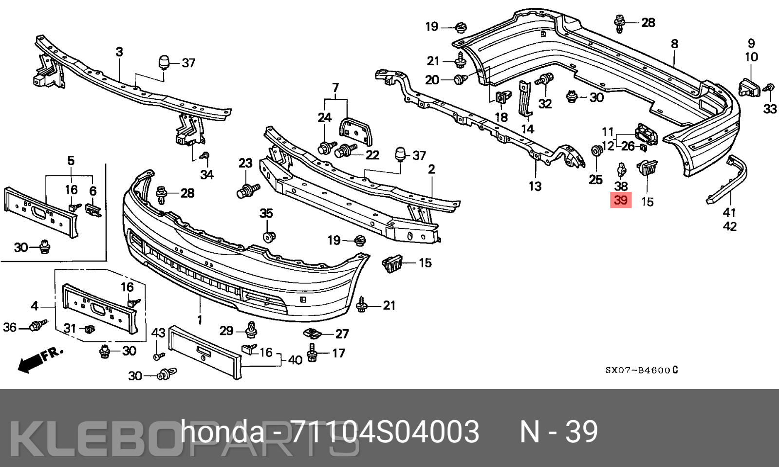 Honda Civic Odyssey Shuttle 1996–1998 buferio apsaugos laikiklis 71104-S04-003 originalus
