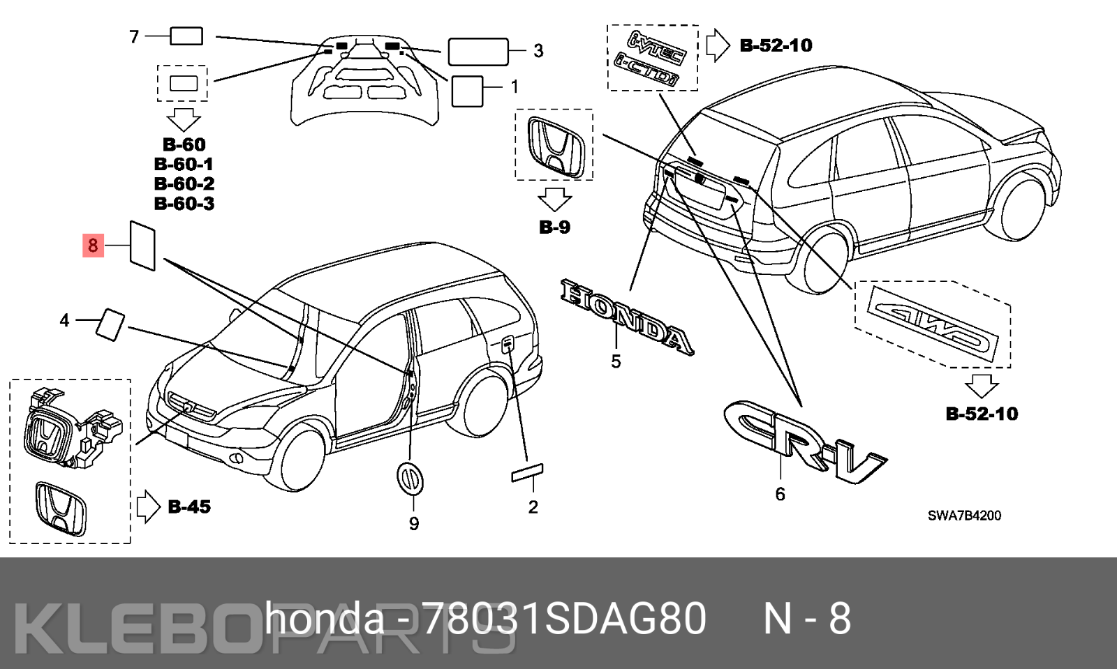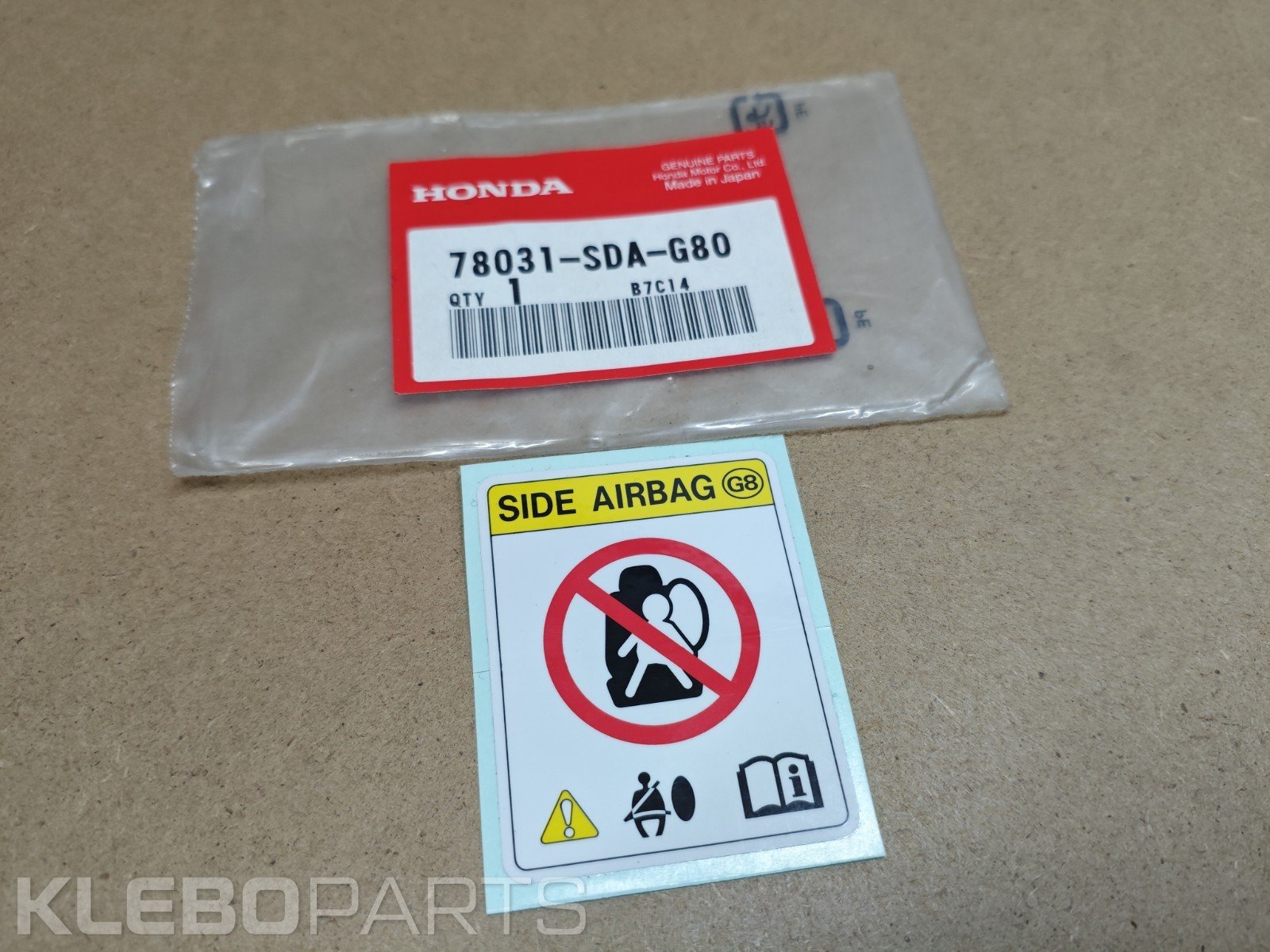Honda šoninių oro pagalvių lipdukas 78031-SDA-G80 originalus