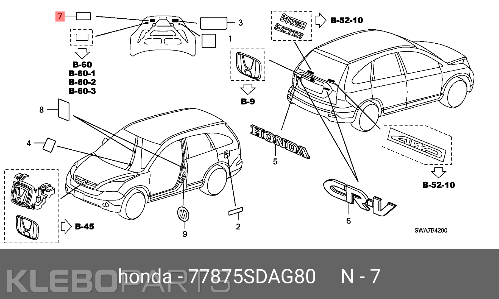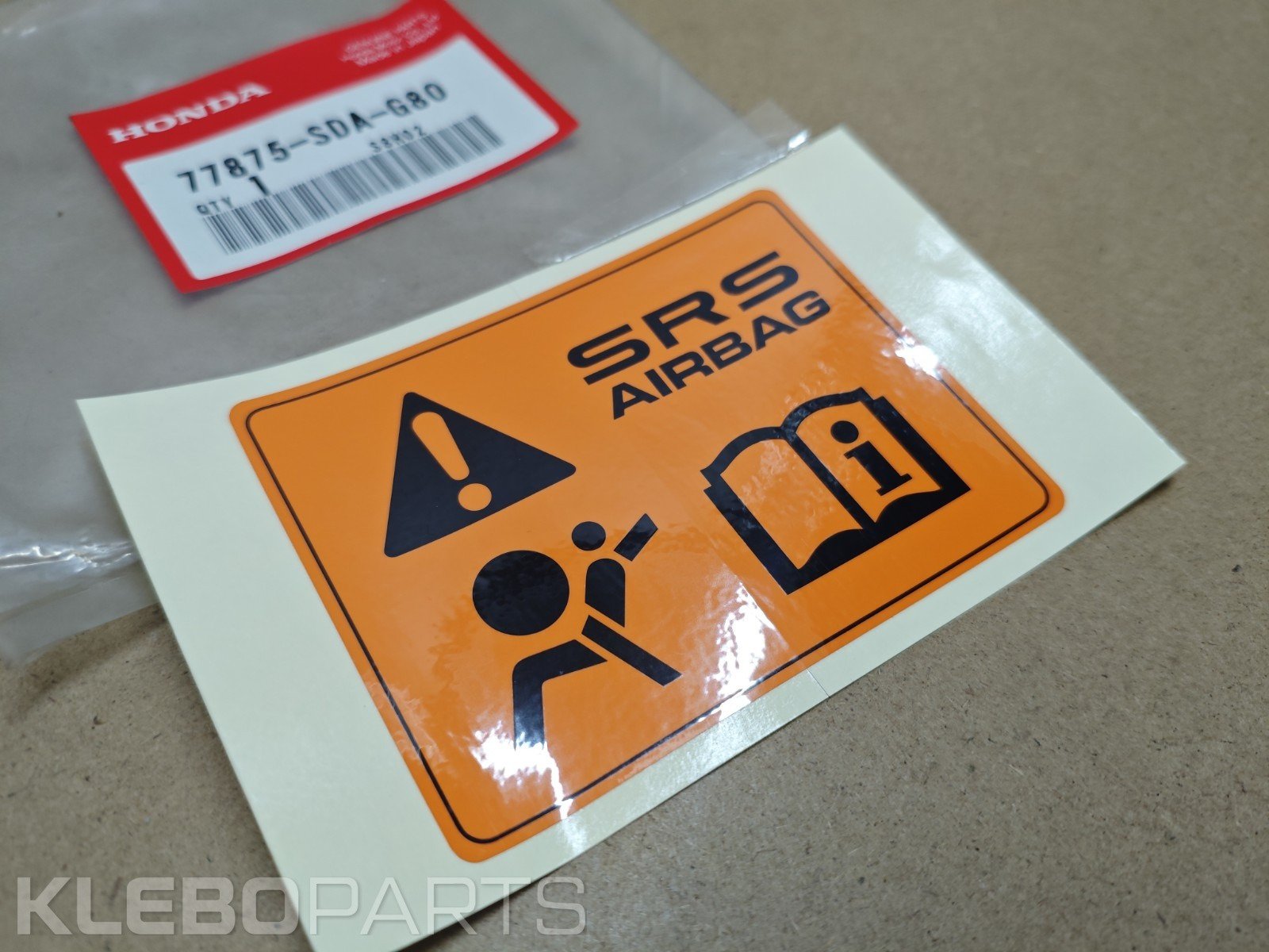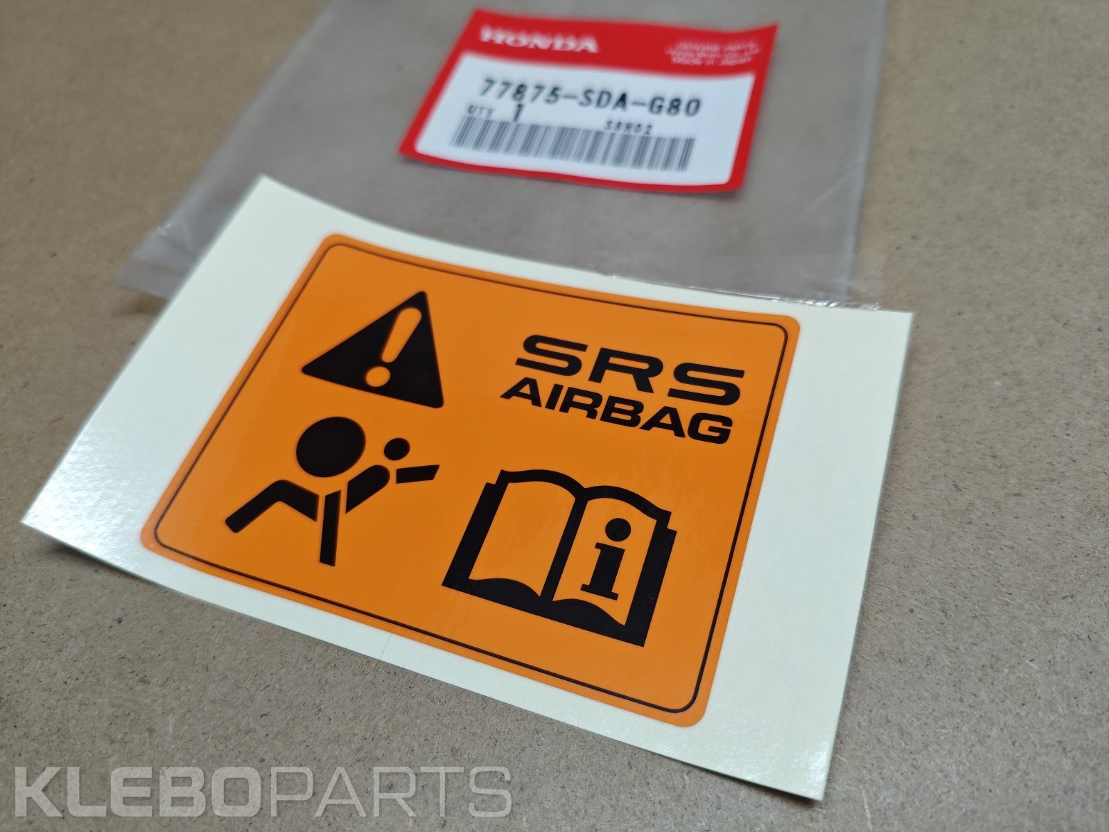 Honda SRS įspėjamoji lipdukų etiketė 77875-SDA-G80 originali