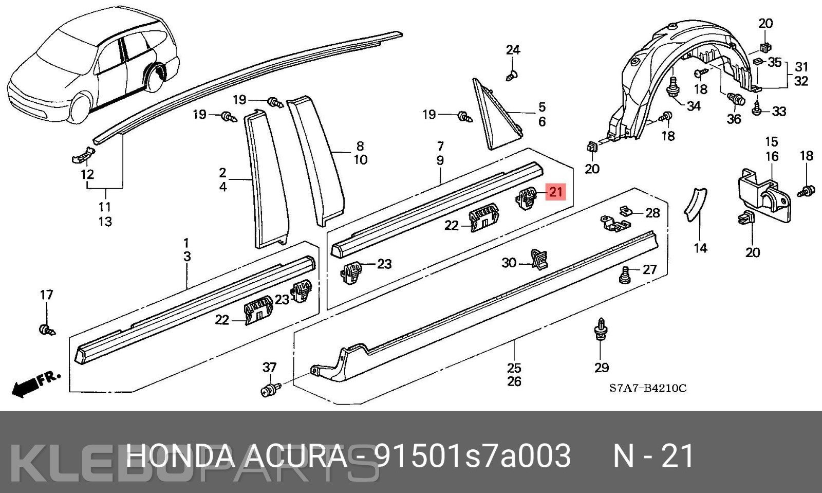 Honda Stream 2001–2005 durų apdailos galinis laikiklis 91501-S7A-003 originalus
