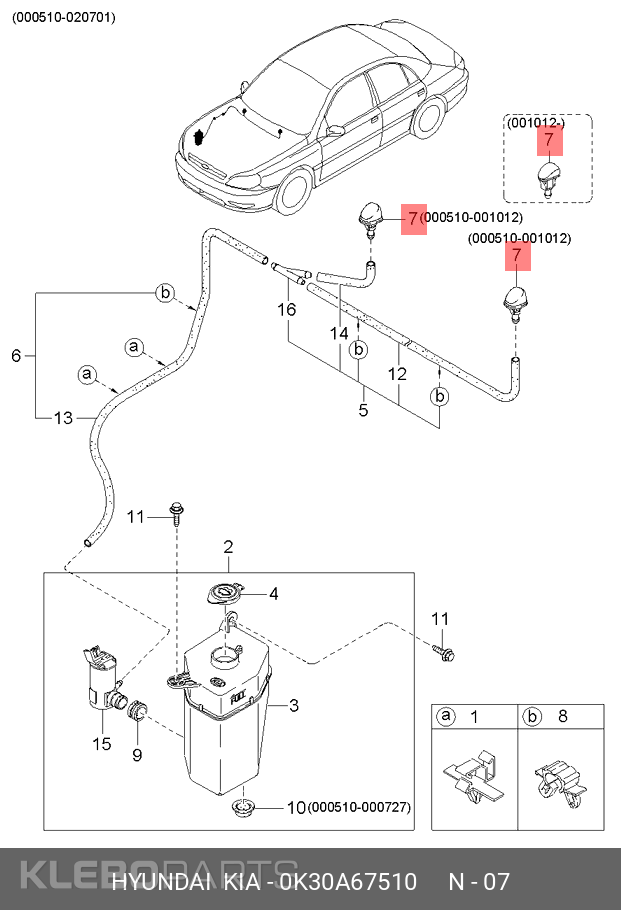 KIA Rio 2000–2005 priekinio langų plovimo purkštukas 0K30A67510